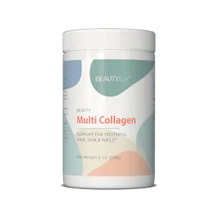 BeautyLux Beauty Multi Collagen is an unflavored multi-collagen peptide powder, formulated from bovine, marine, chicken, and eggshell membrane collagen. This premium powder features collagen types I, II, III, V, and X which are sustainably sourced from cage-free chickens, grass-fed cows, and kosher, North Atlantic fish.*