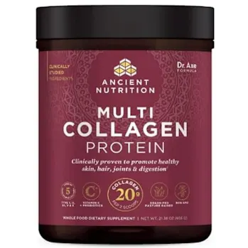 Ancient Nutrition's Multi Collagen Protein is a pretty solid choice for a collagen supplement. It contains 10g of hydrolyzed collagen per scoop. Their collagen is sourced from grass-fed and pasture-raised bovine collagen and also contains probiotics and vitamin C.